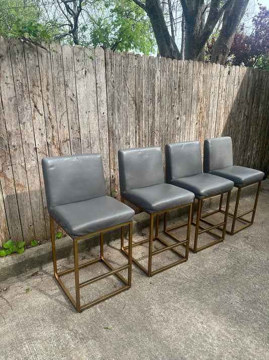 RH Emery Grey Leather Counter Stools Set of 4