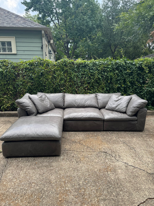 RH Cloud Leather Modular Sectional Four Piece Gray Restoration Hardware