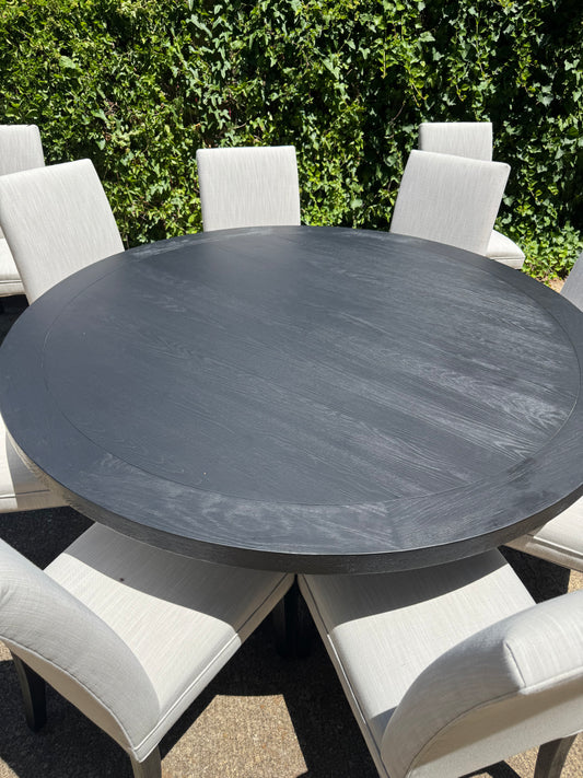 RH Hudson Parsons Set of 10 Dining Chairs French Black 72” Round Dining Table Restoration Hardware