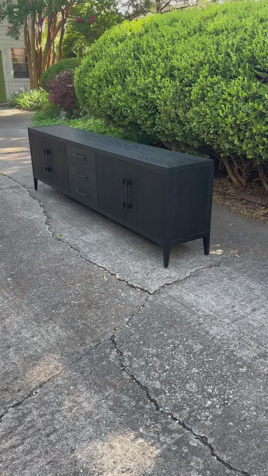 RH French Contemporary 4-Door Media Console with Drawers Black Oak/Satin Bronze Restoration Hardware