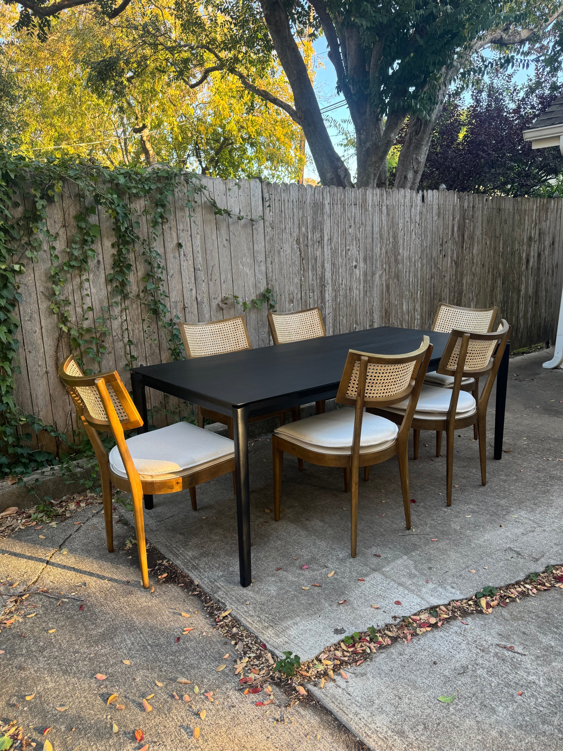 Perigold Dining Set - Ethnicraft Black Oak Dining Table + 6 Four Hands Cane Back Chairs