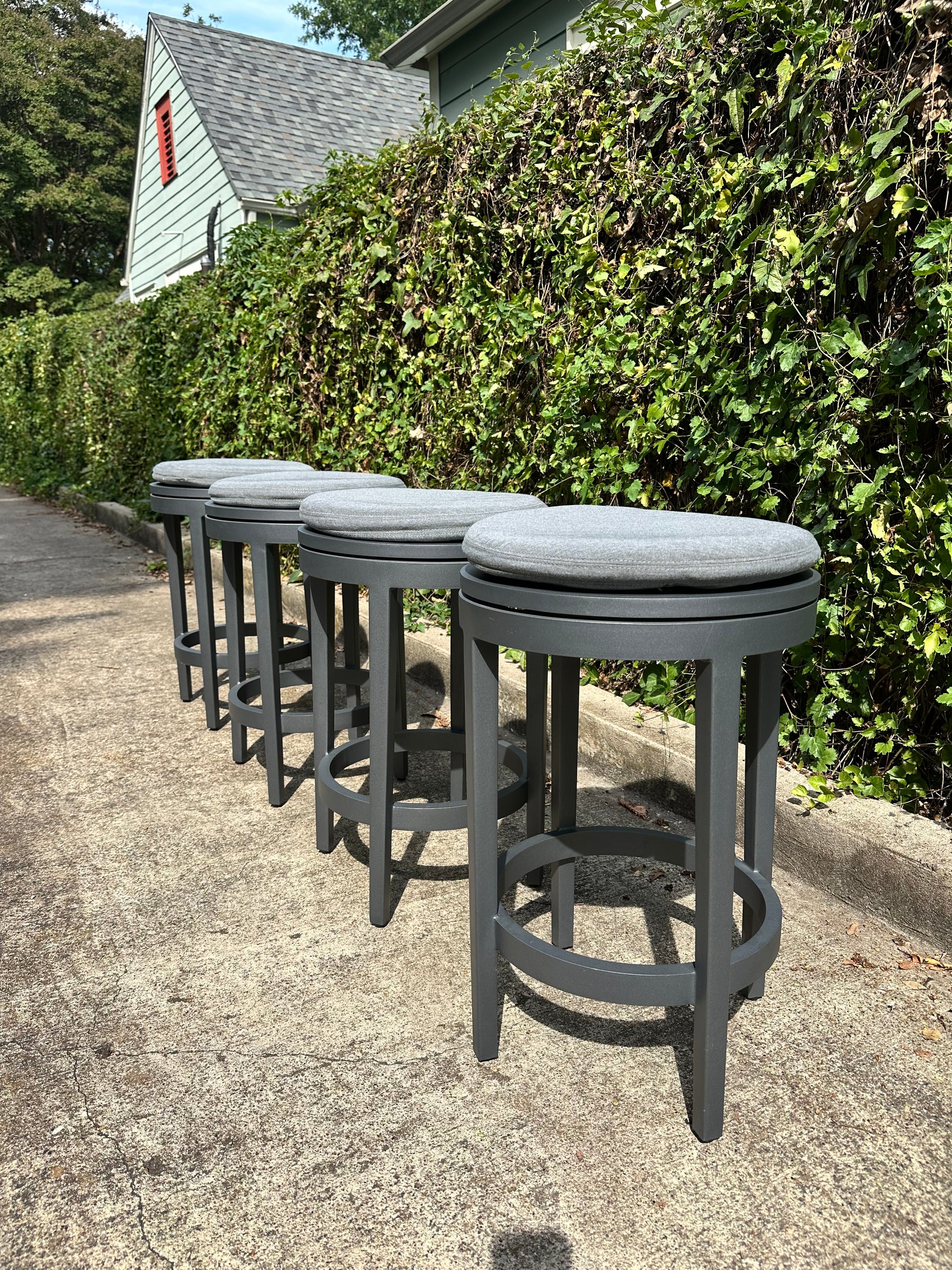 RH Balmain Aluminum Swivel Outdoor Stools Set of 4 Restoration Hardware