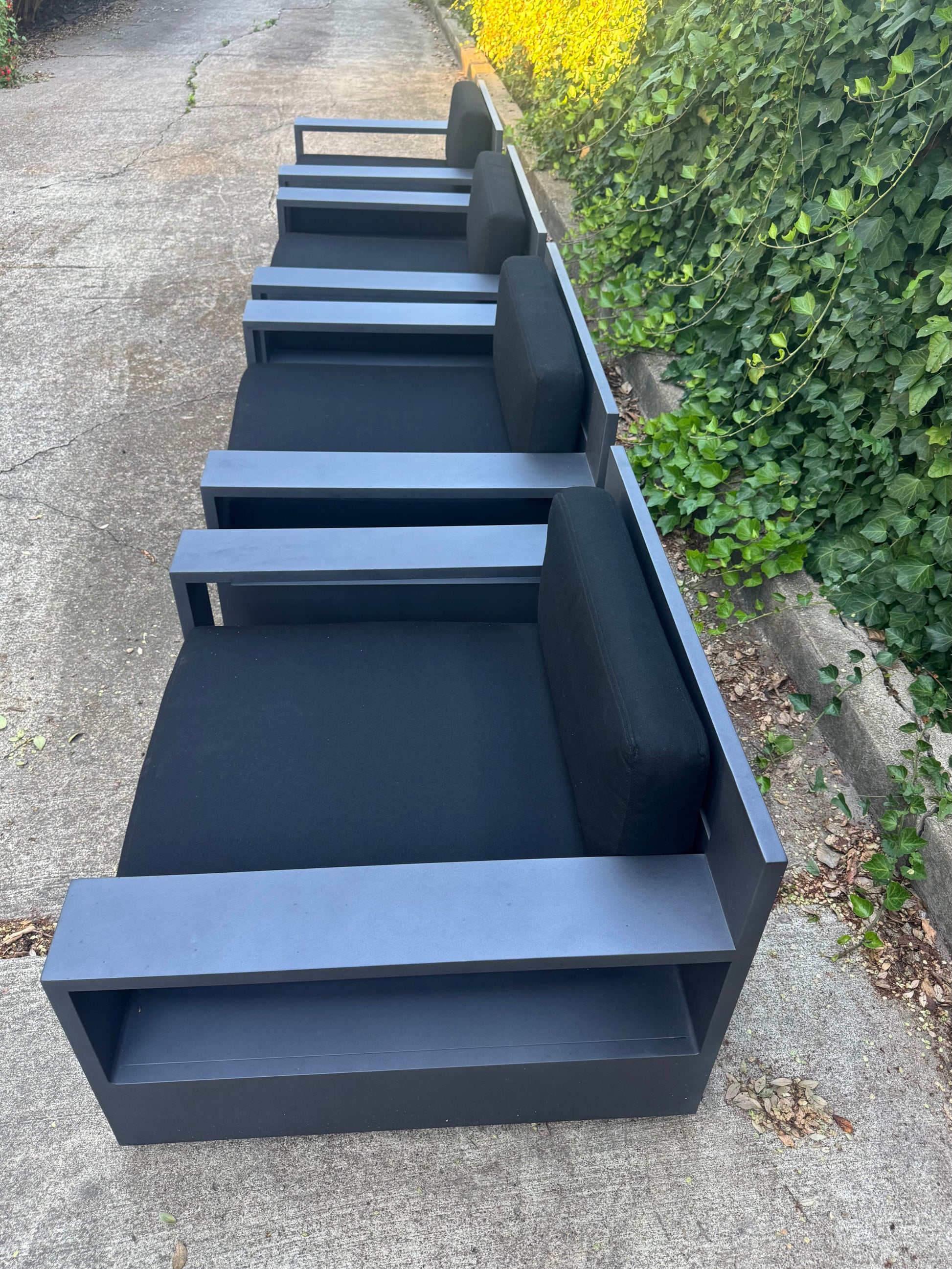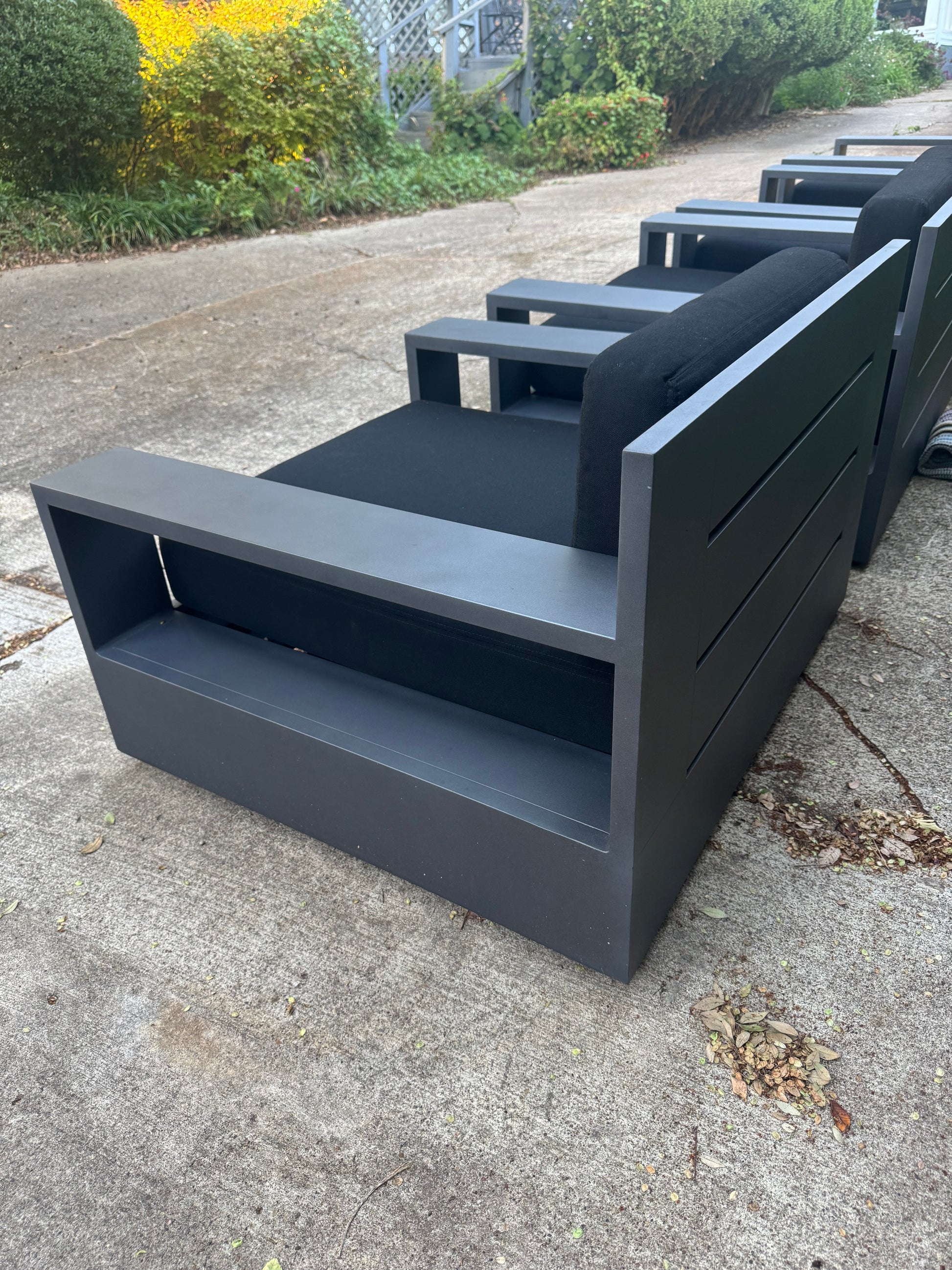 RH Marbella Aluminum Swivel Lounge Chairs Set of 4 Black Cushions Restoration Hardware